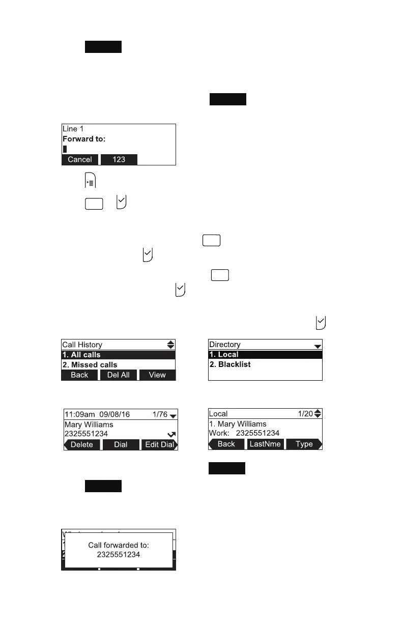 5. Choose the Call History or Directory you want to access: Press the keypad