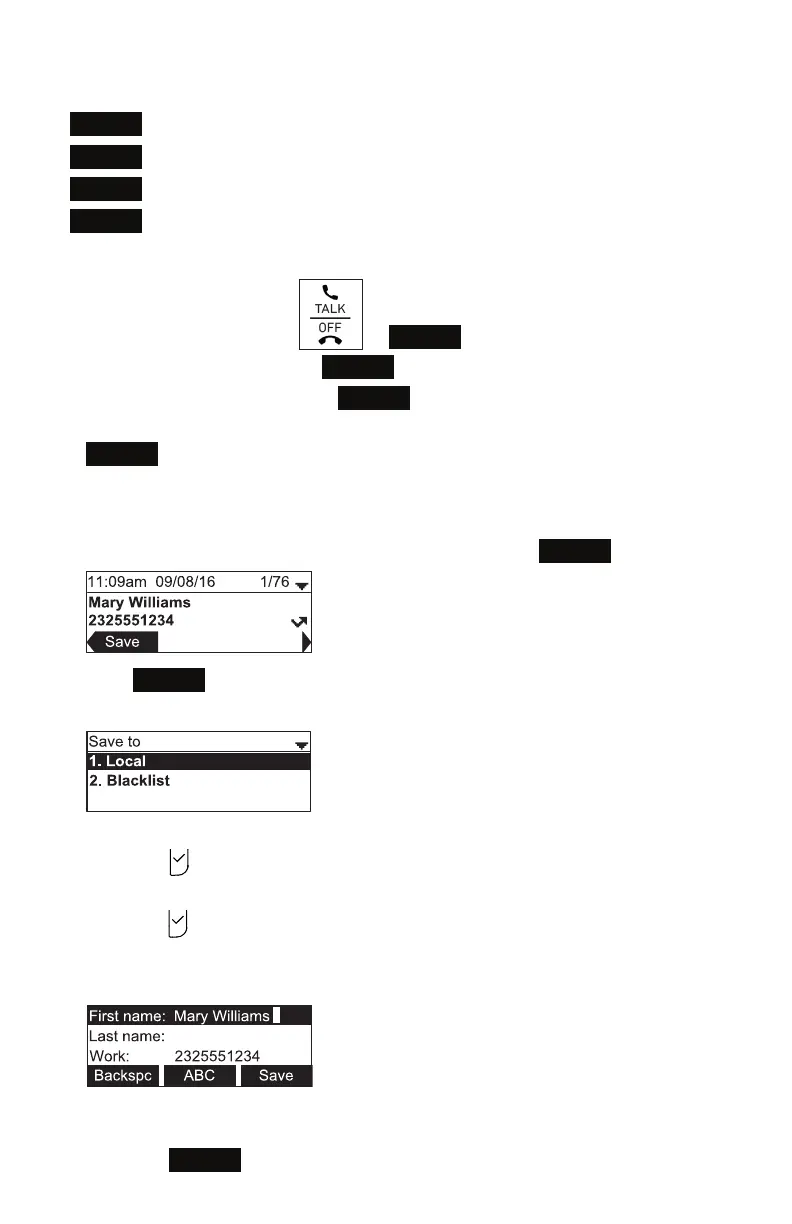 The directory add/edit screen appears. The phone automacally lls in the name