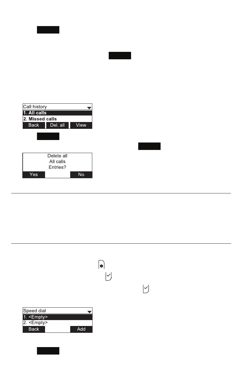 which you would like to delete all entries: All calls, Missed calls, Received calls, or