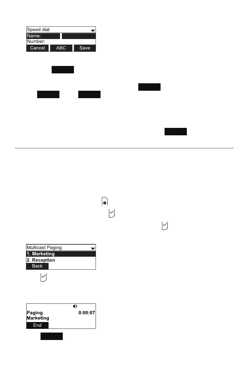 6. Use the dial pad keys to enter the name and number.