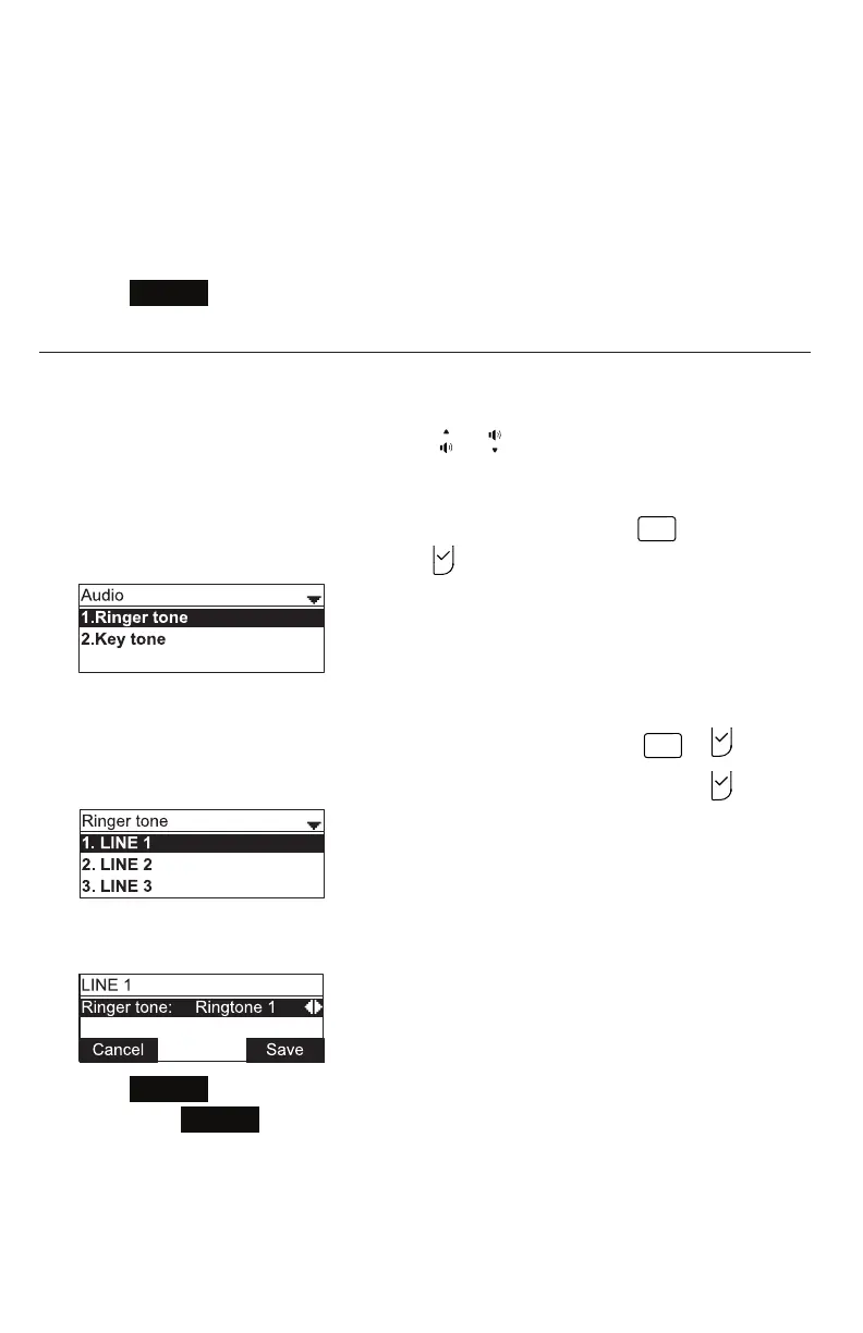 1. From the Audio menu, open the Ringer tone screen by pressing