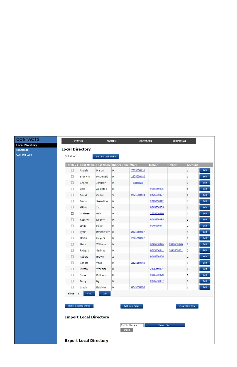 On the Local Directory page, you can manage your local directory entries. You can sort,