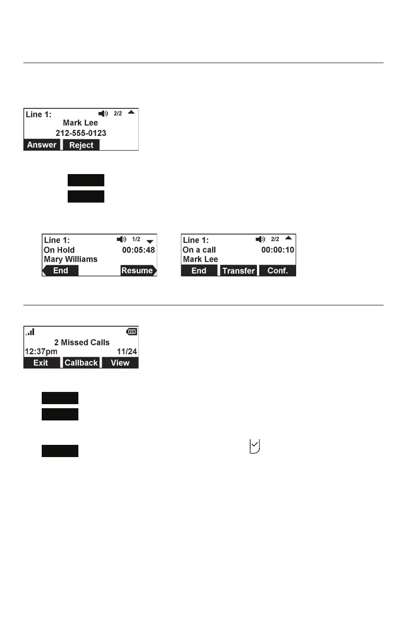 If you don’t respond to an incoming call, the phone displays a missed-call alert screen.