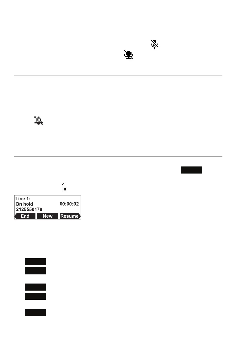 Note that the default On hold screen soft keys are shown above. Your phone’s soft