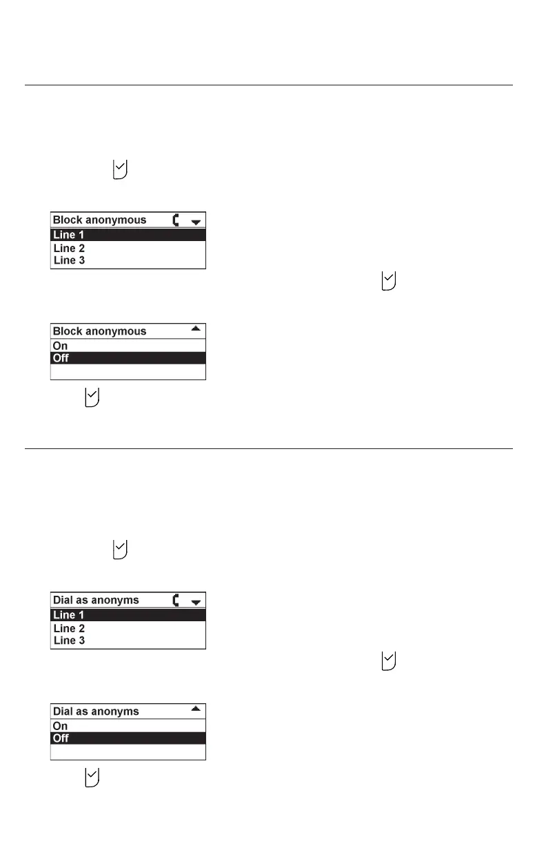 Block Anonymous enables the phone to reject incoming calls that have no caller ID.