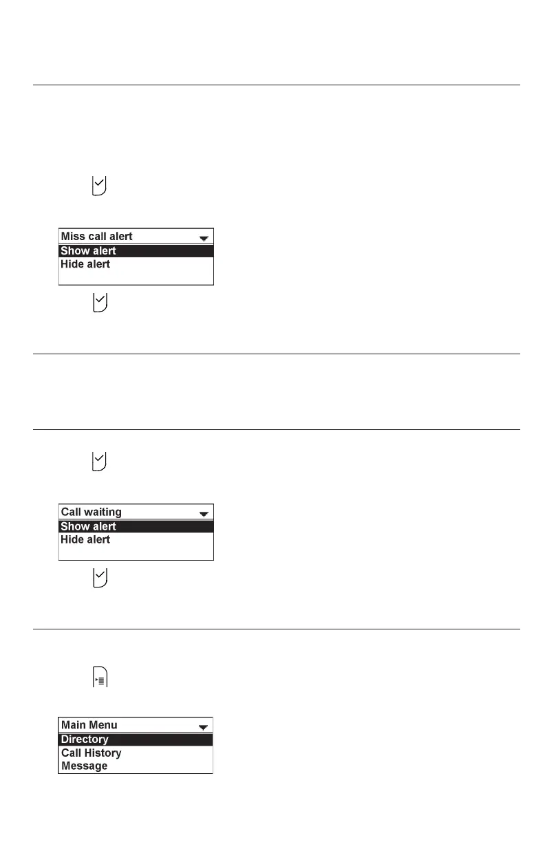 1. From the Call Features menu, press p or q to highlight Miss call alert, and then