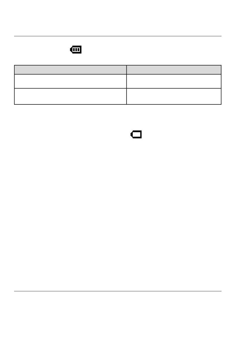 • The battery icon has no bars and is flashing .