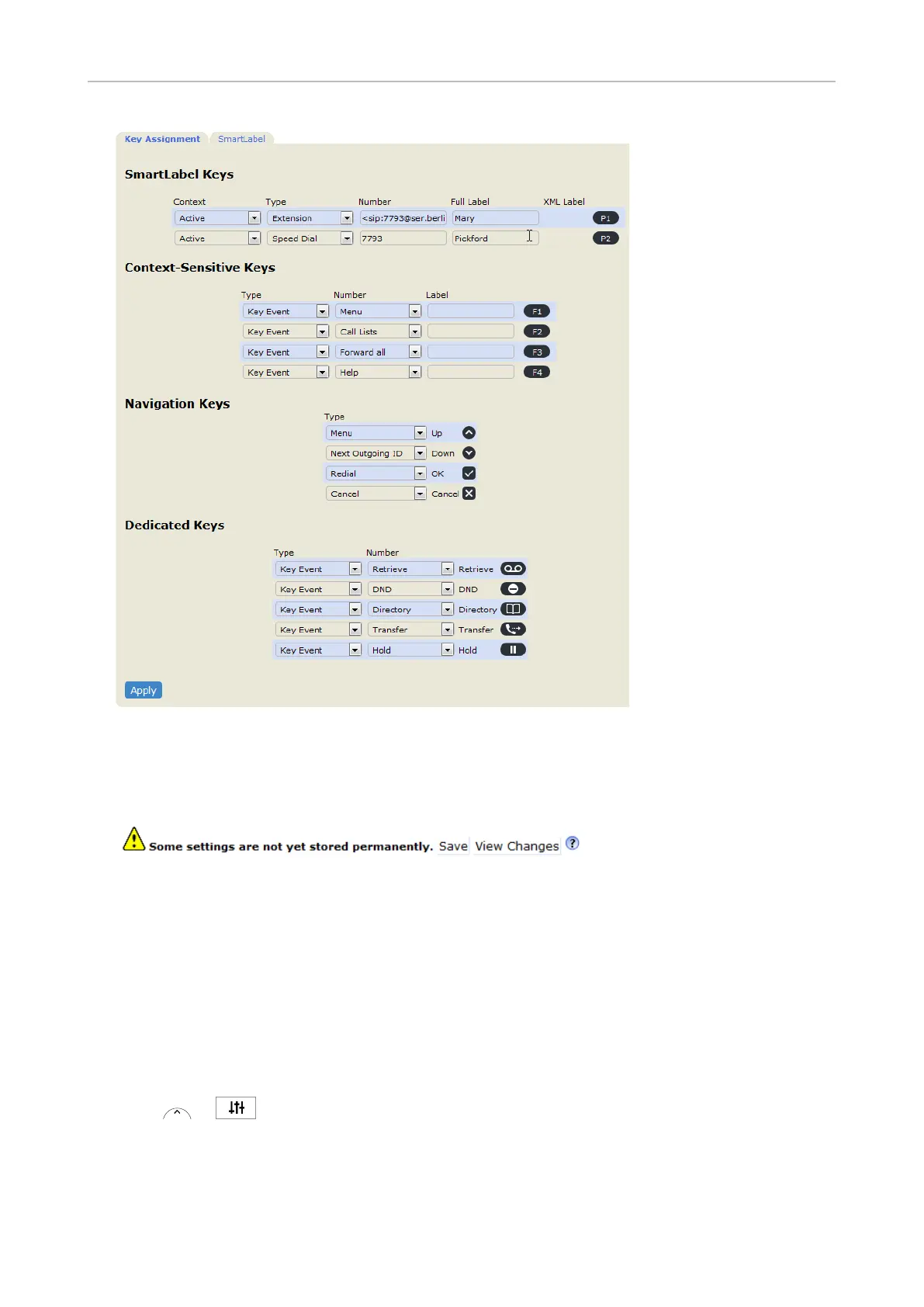 Function key settings on the phone