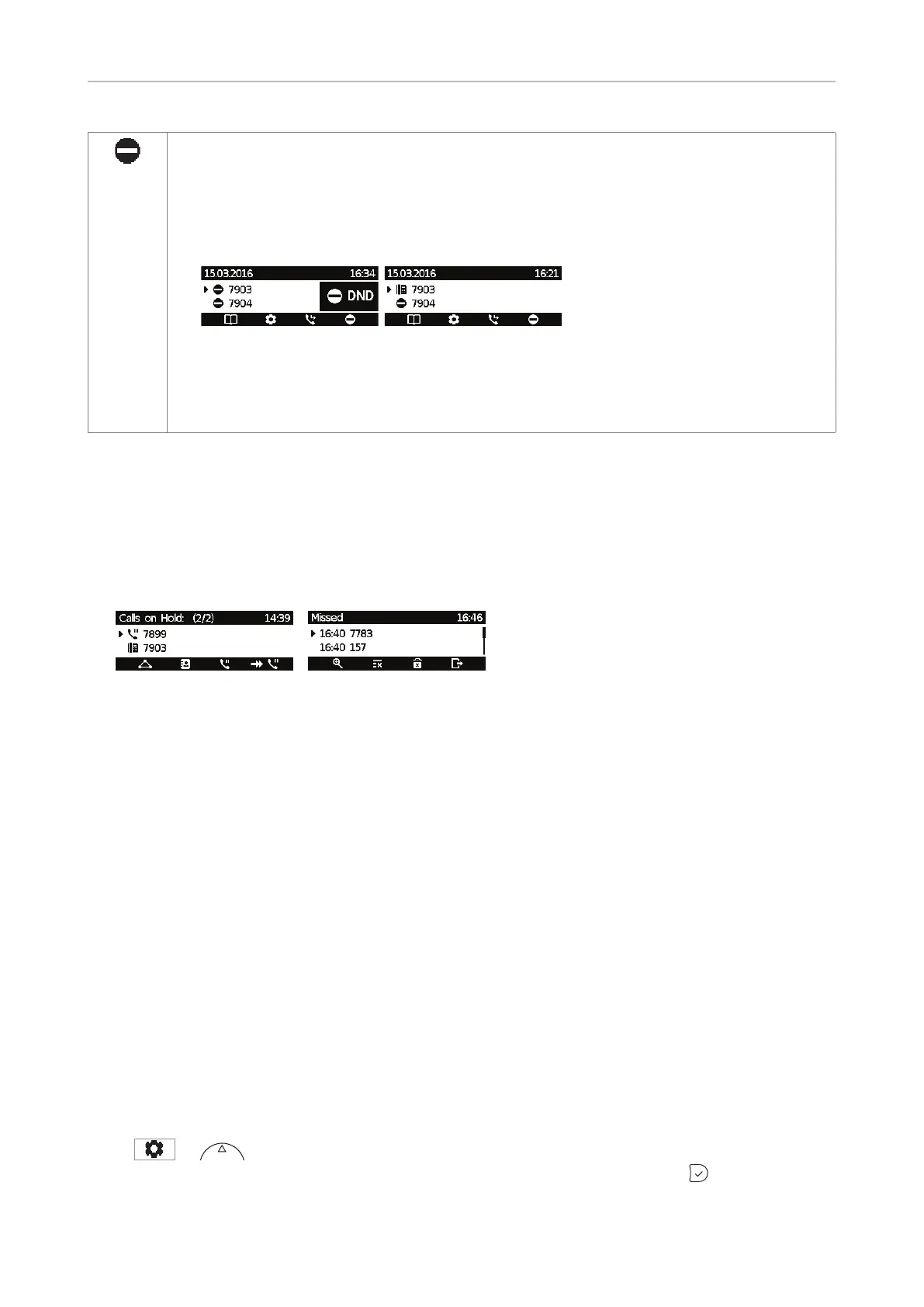Turn "do not disturb" (DND) mode on and o for all identities registered on the phone. In