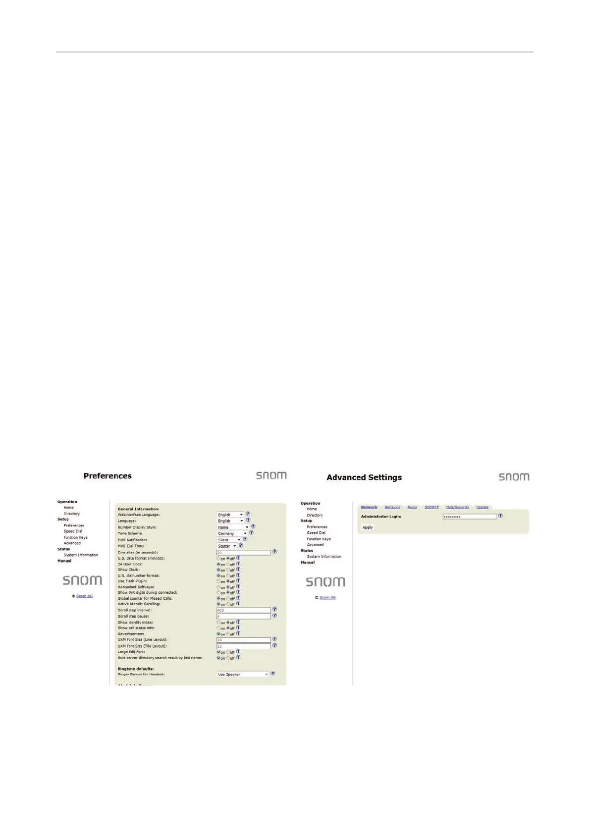 Snom phones can be operated in administrator or user mode. In administrator mode, all settings are