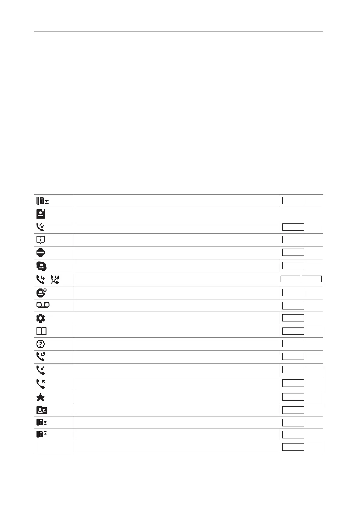 These are the symbols displayed in the function key line when the phone is idle. They can be selected