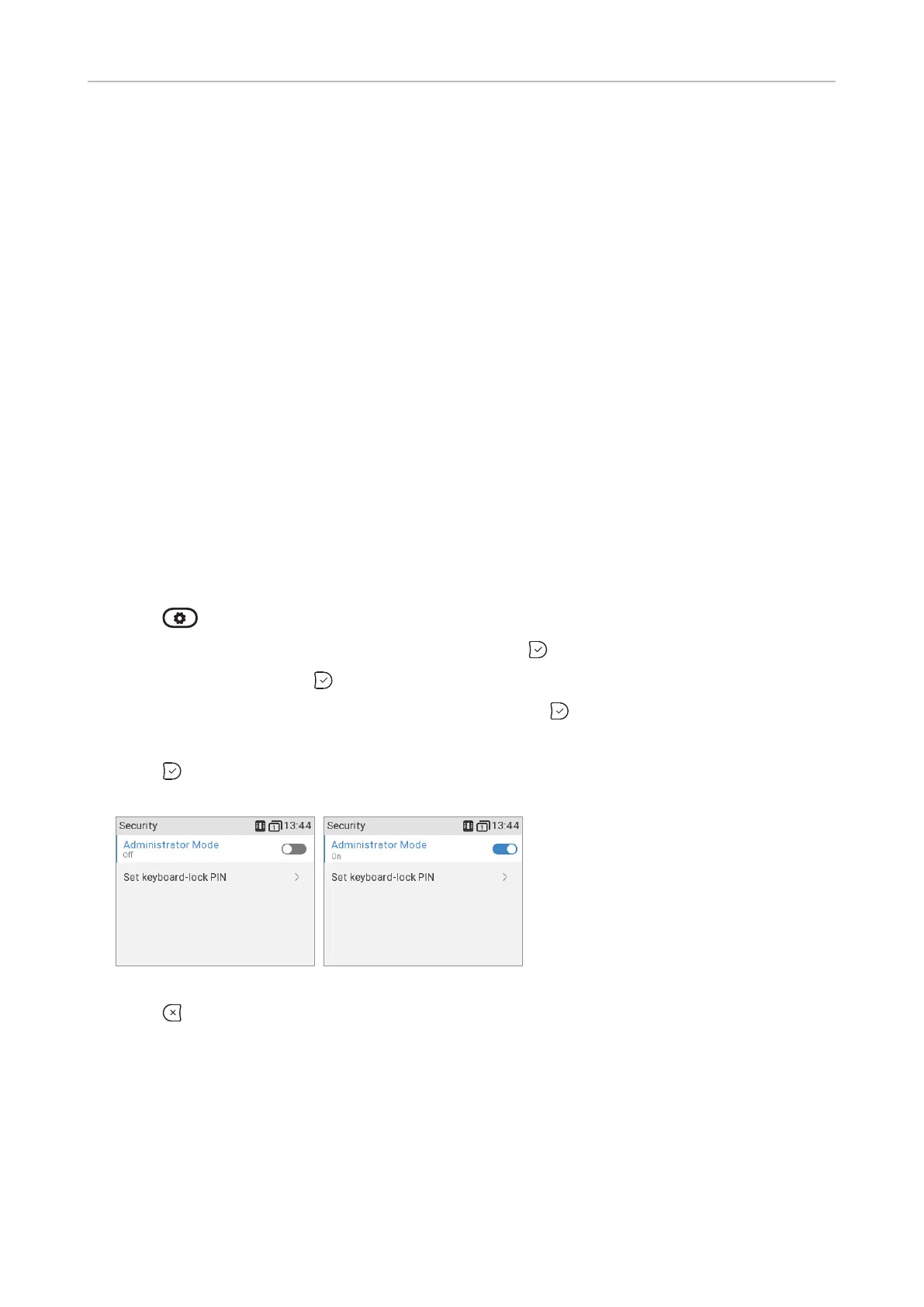 6. Press to save and return to the Security menu where Administrator Mode has been changed