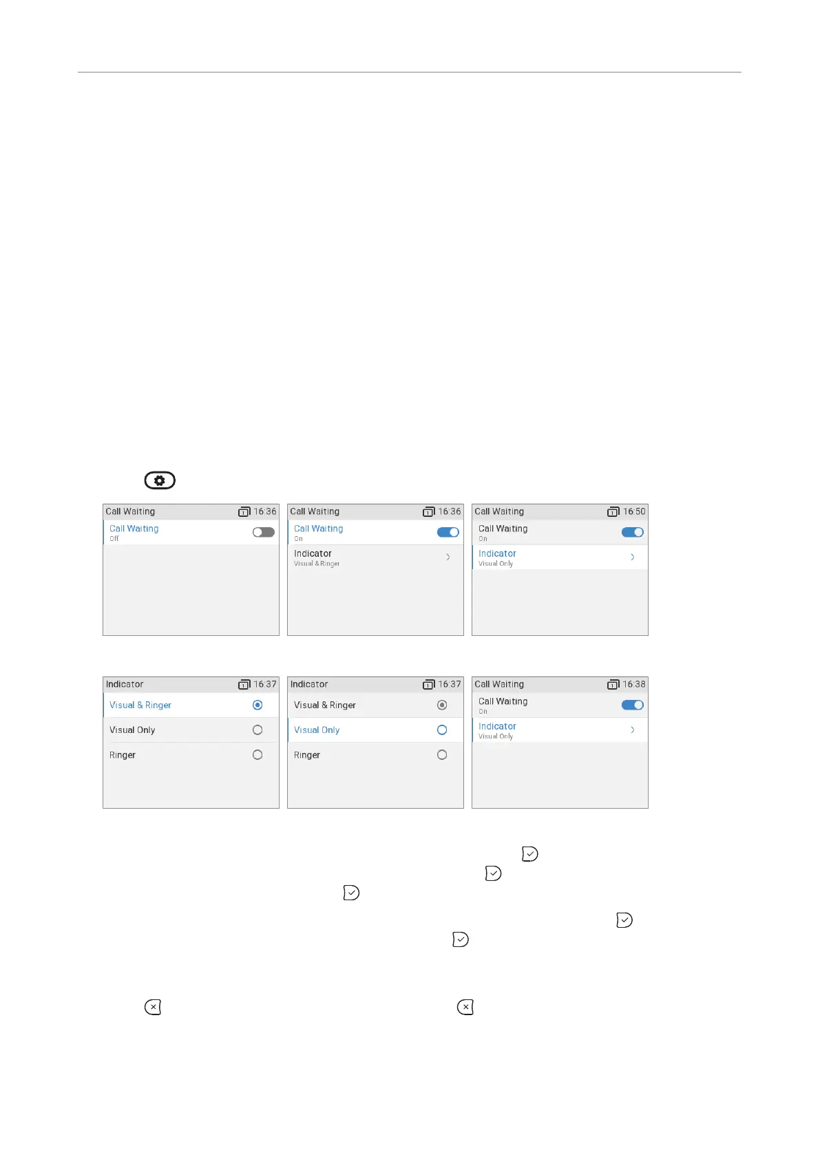 Call waiting menu. The Indicator setting now indicates the new setting, for example, if you