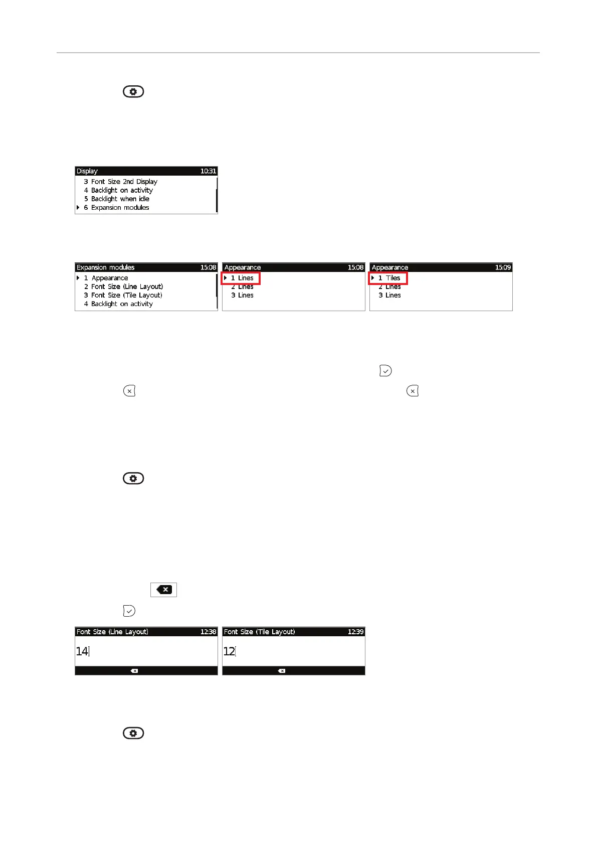 5. Press 2 or 3 to select the font size setting for line or tile layout, respectively (Fig. 9).