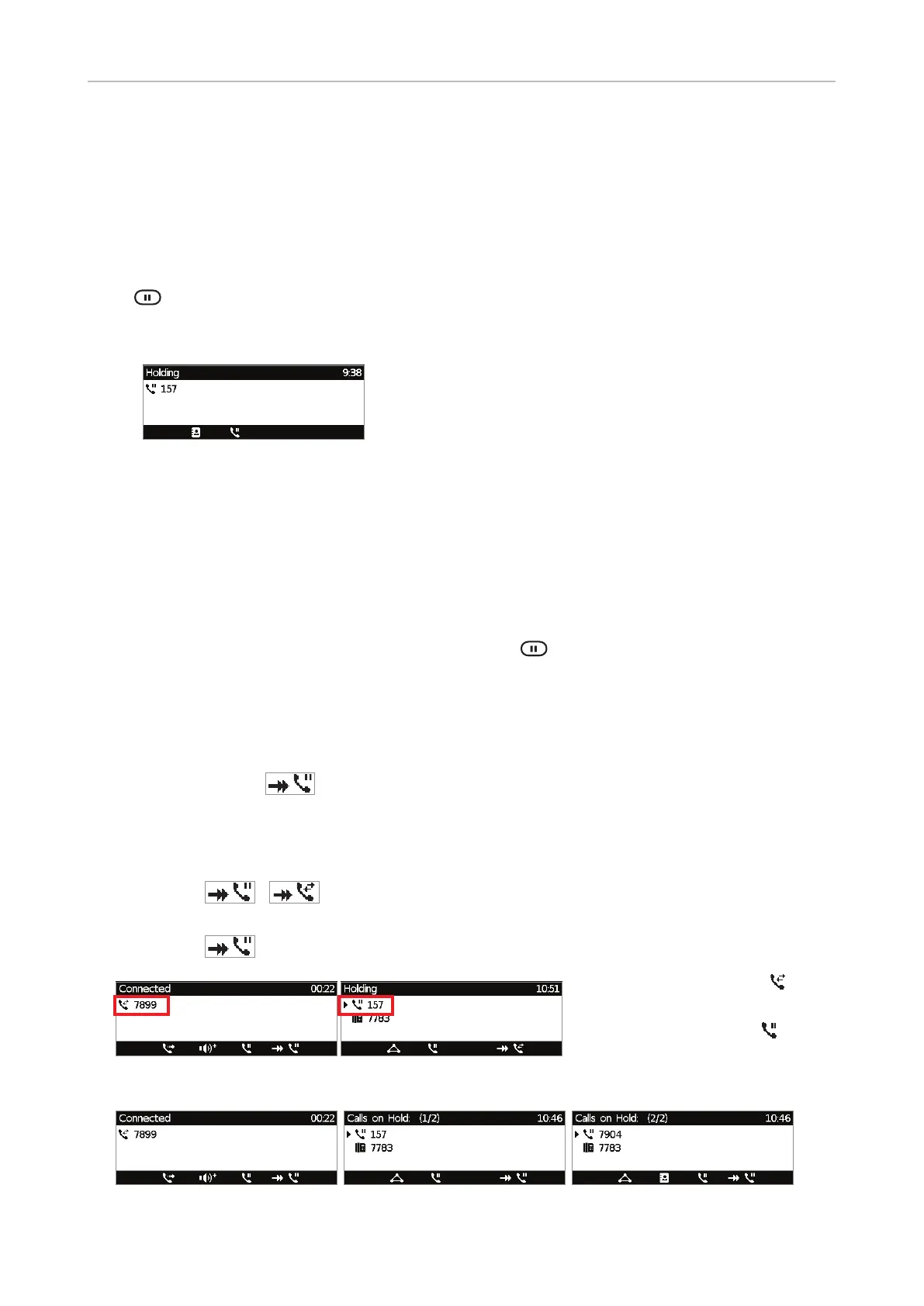 to put the ongoing call on hold. Held calls are indicated threefold: