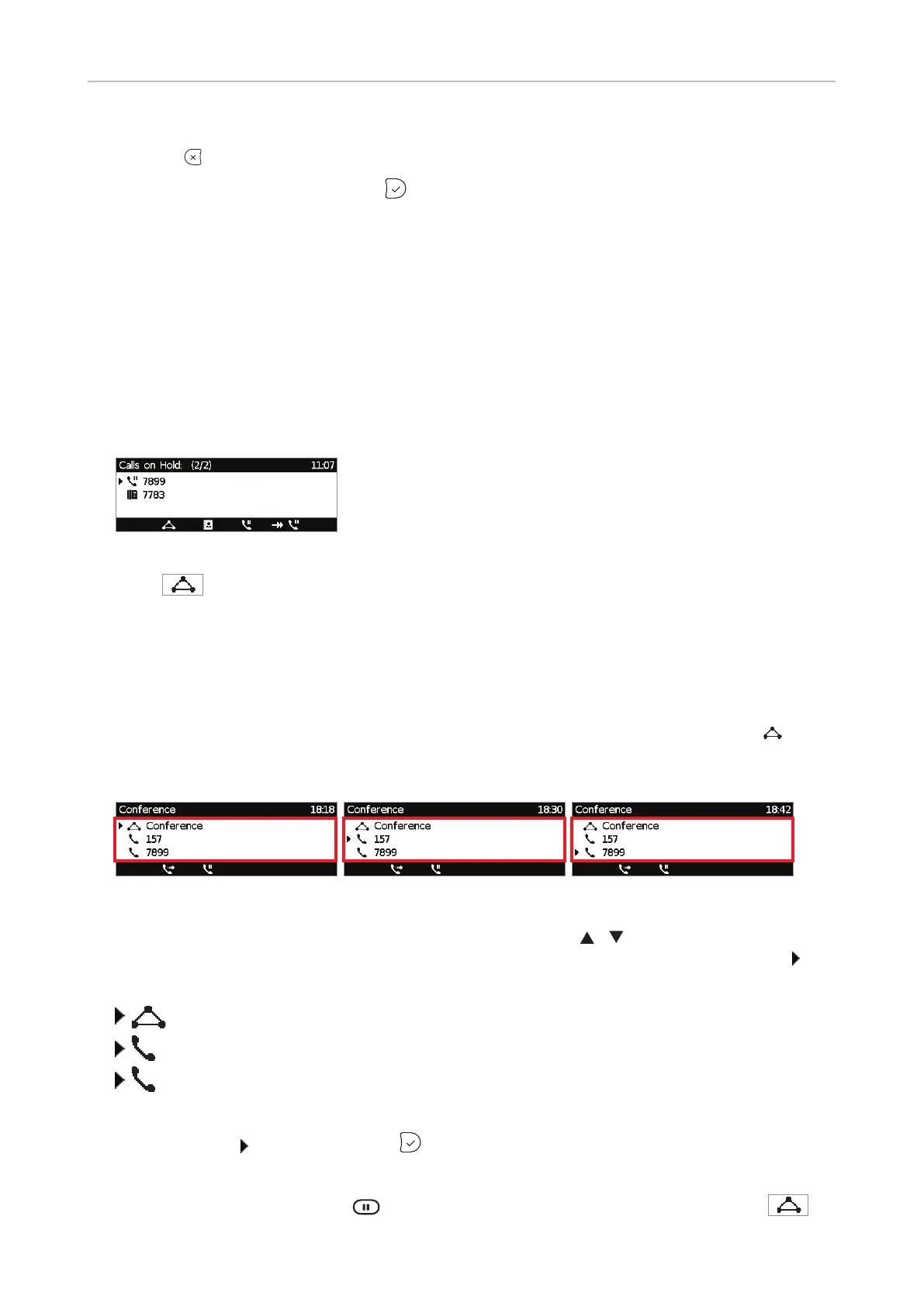 Your input on the phone's keys will aect the caller/callee(s) or the entire conference shown in the