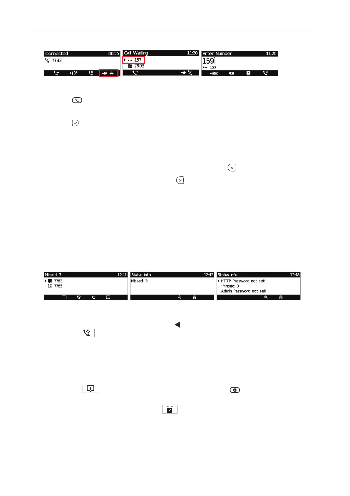 • Turning o the missed call indications (LED and "Missed" message). Use one of the following