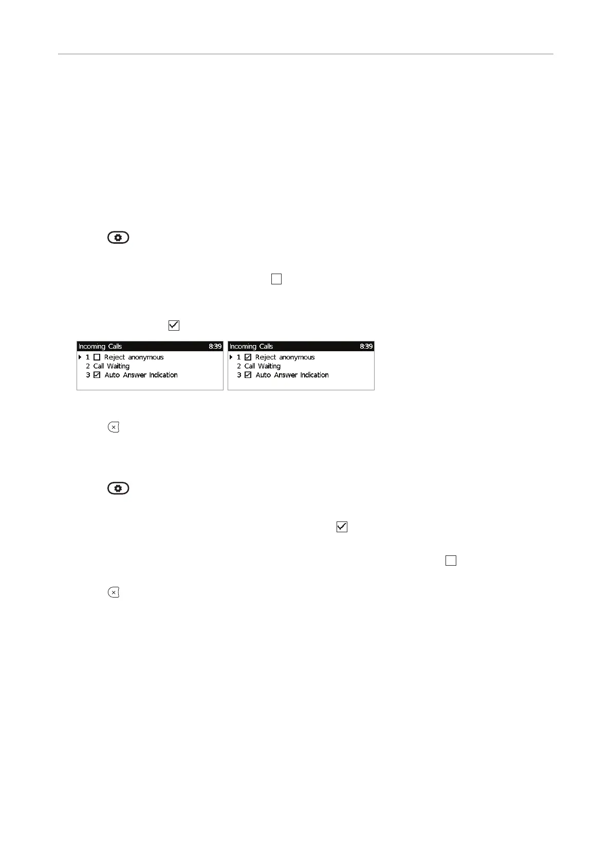 4. Press 1 to activate the function. When it is activated, i.e., anonymous callers are being rejected,