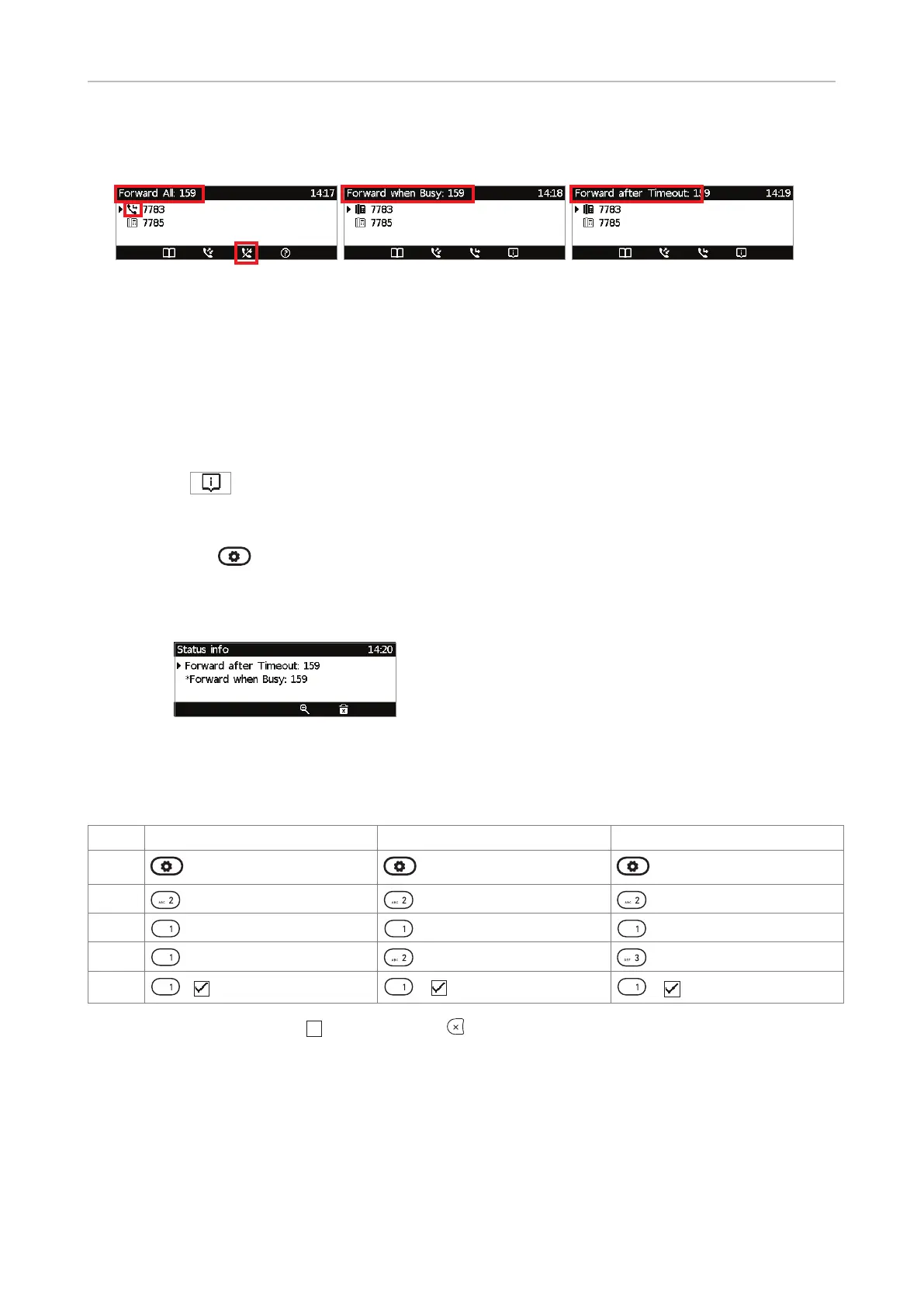 activated, "Forward when busy" is shown in the status line. If there are other status