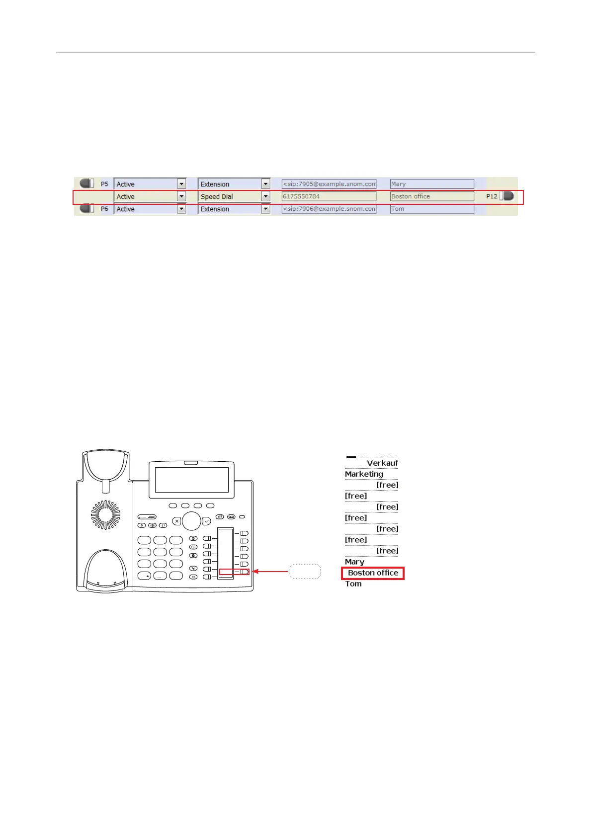 expansion module. In our example, key P12 on page 1 of the function keys will be used to speed dial