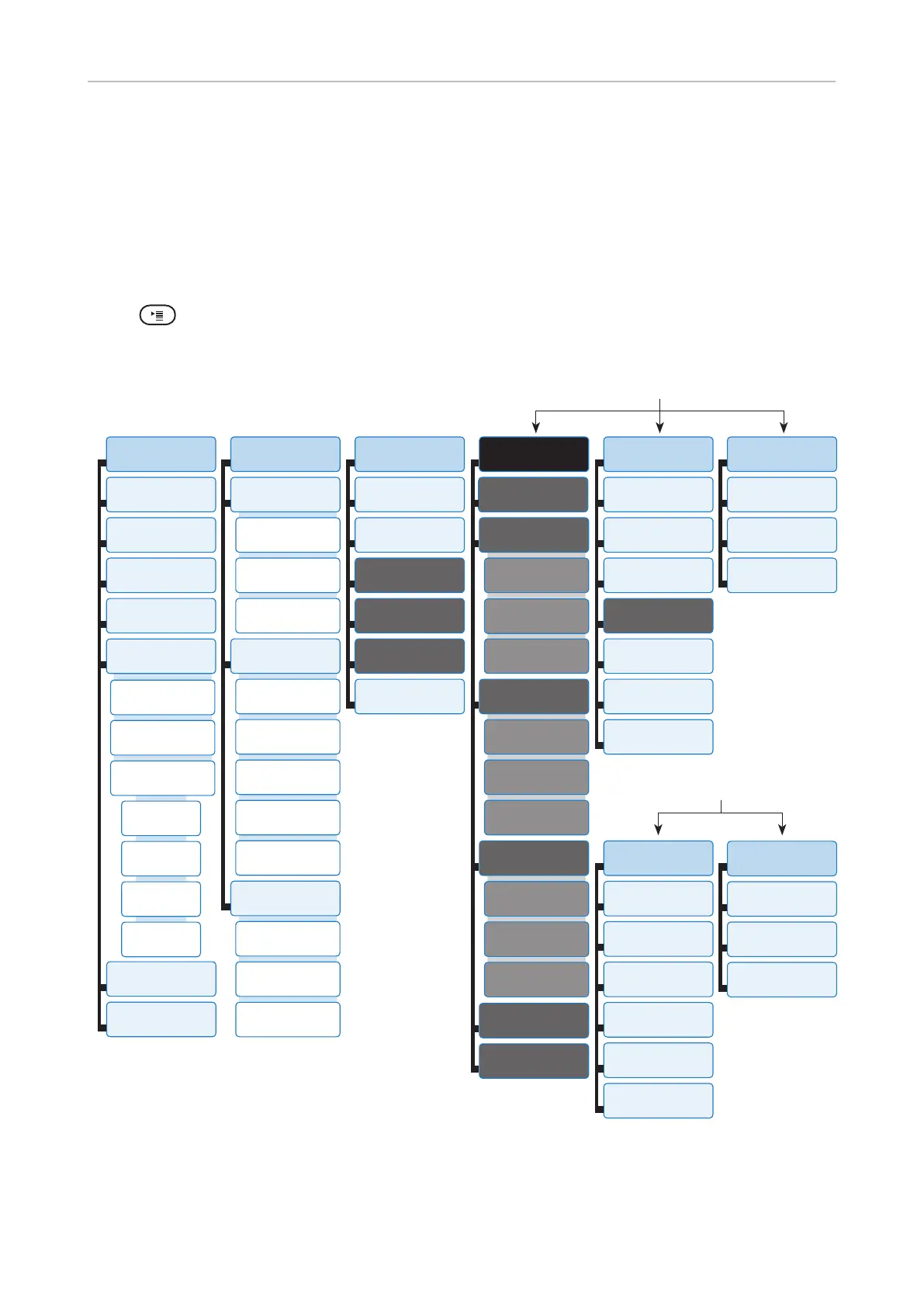 The submenus and the settings shaded black and gray are not available when the phone is running in