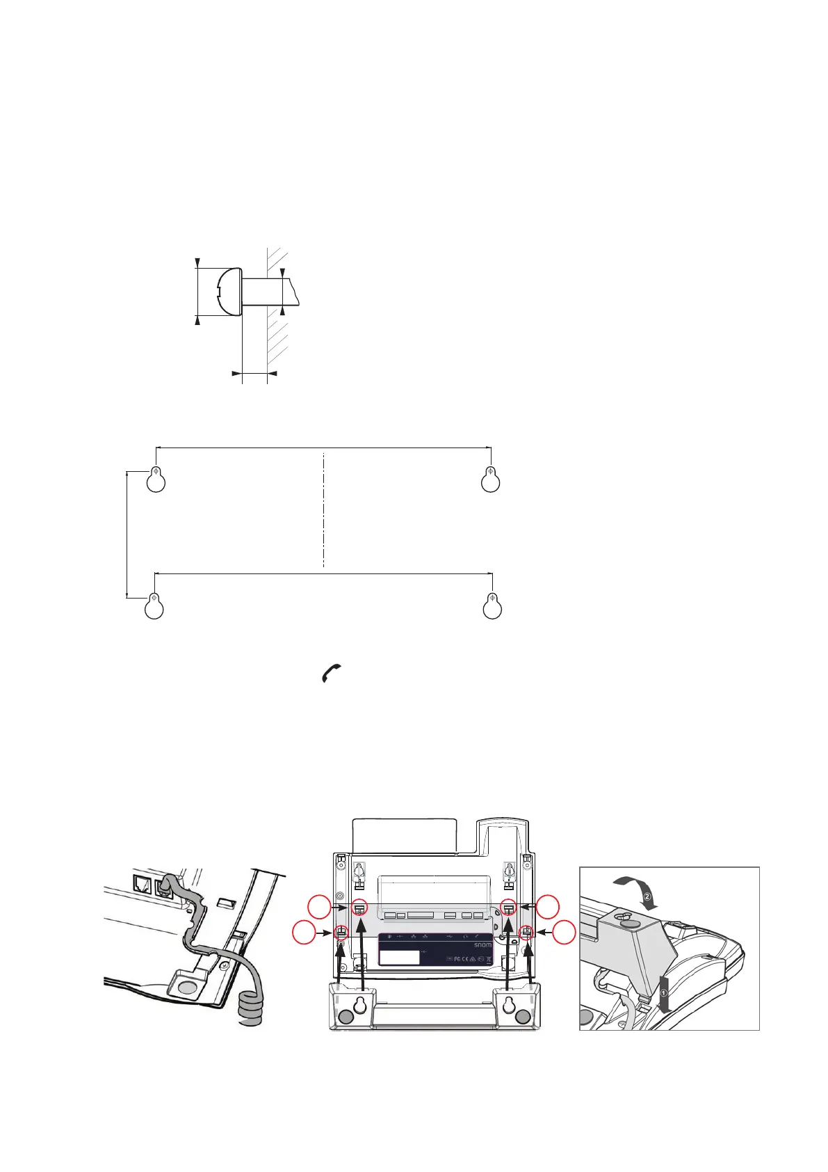 1. Before attaching the footstand in the position for wall mounting, plug the long end of the handset