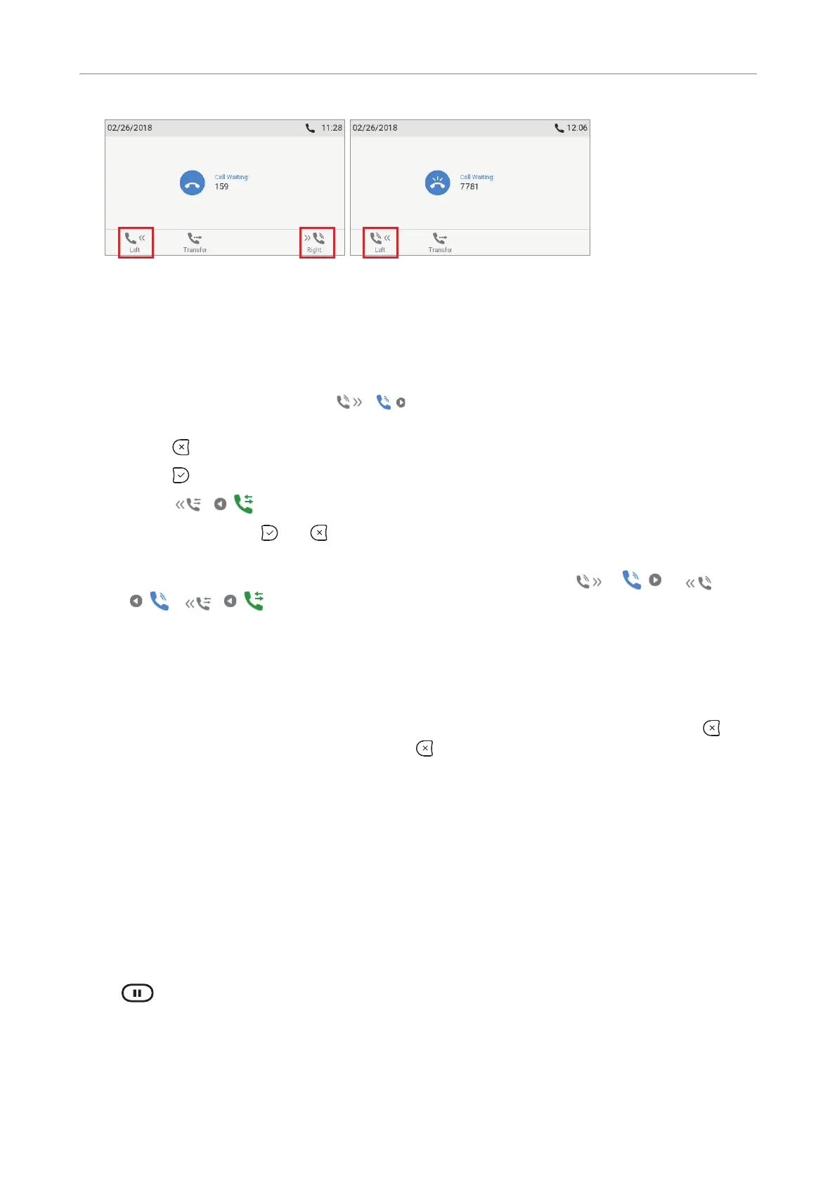 ◦ If there is more than one call waiting (Fig. 5 and 6), press the keys