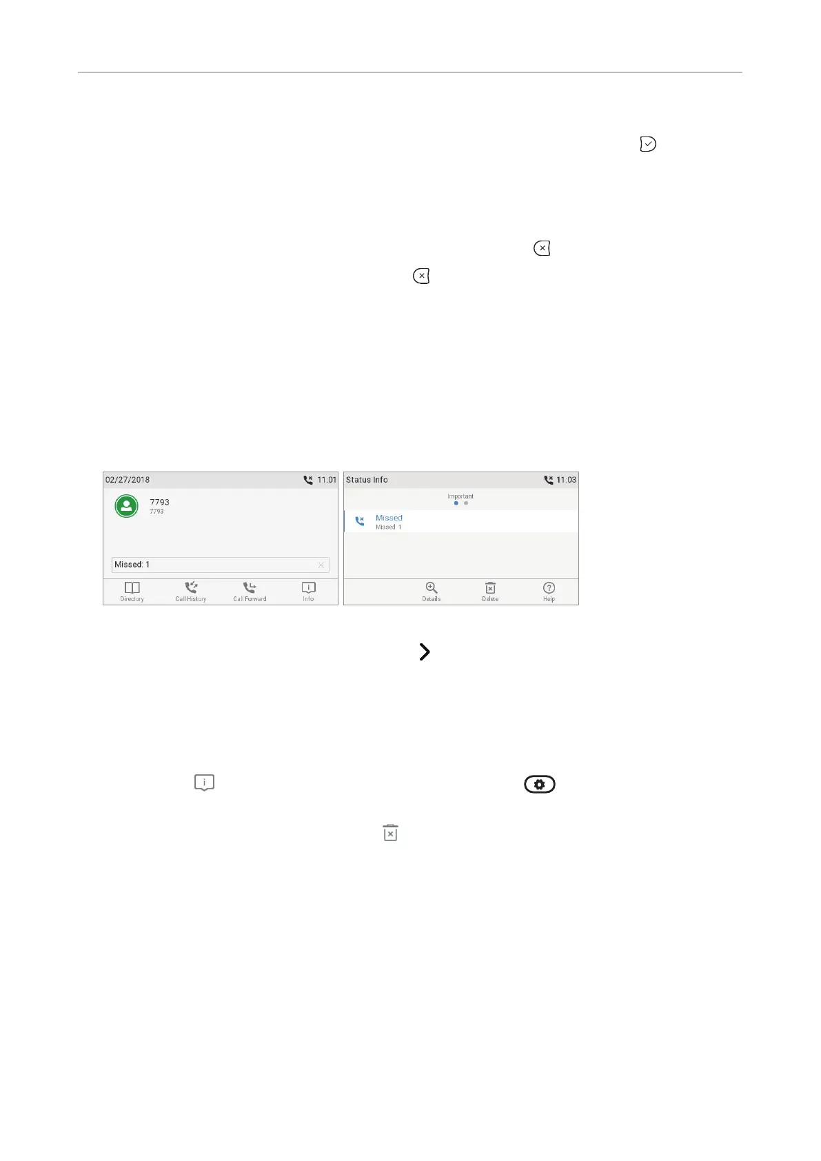 Note: This will only remove the status message "missed" and turn o the LED. The missed