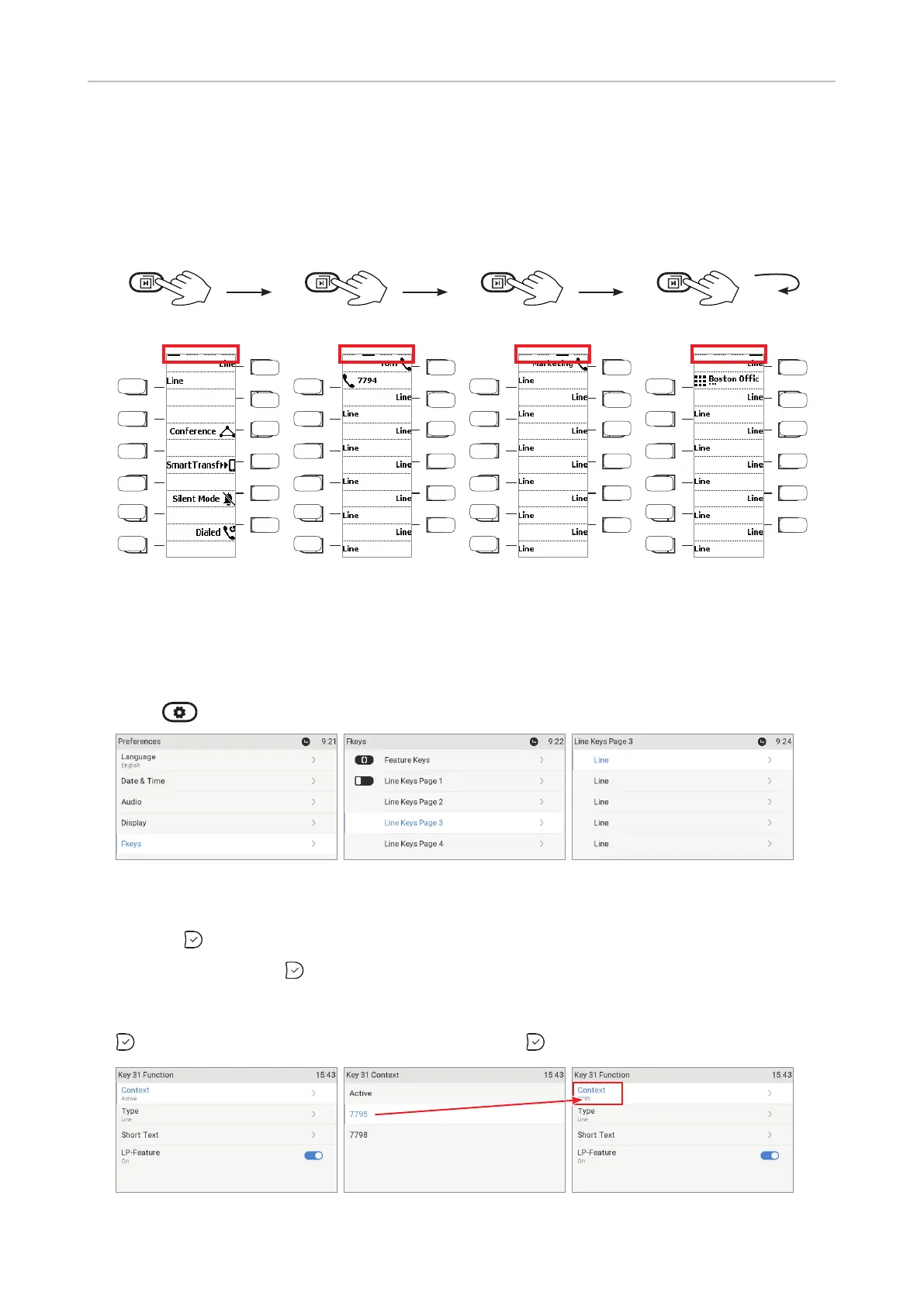 2. Select Line keys page 1, 2, 3, or 4, respectively, by scrolling to the respective line keys page and