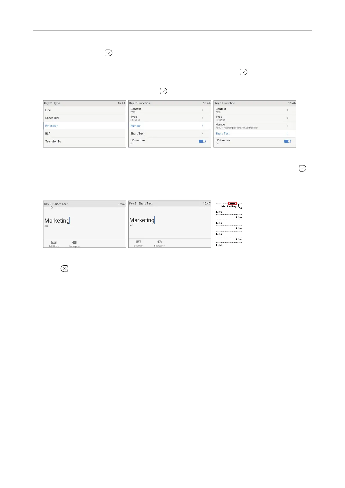 7. Press to return to the idle screen. The top key on page 3 can now be used to dial the extension