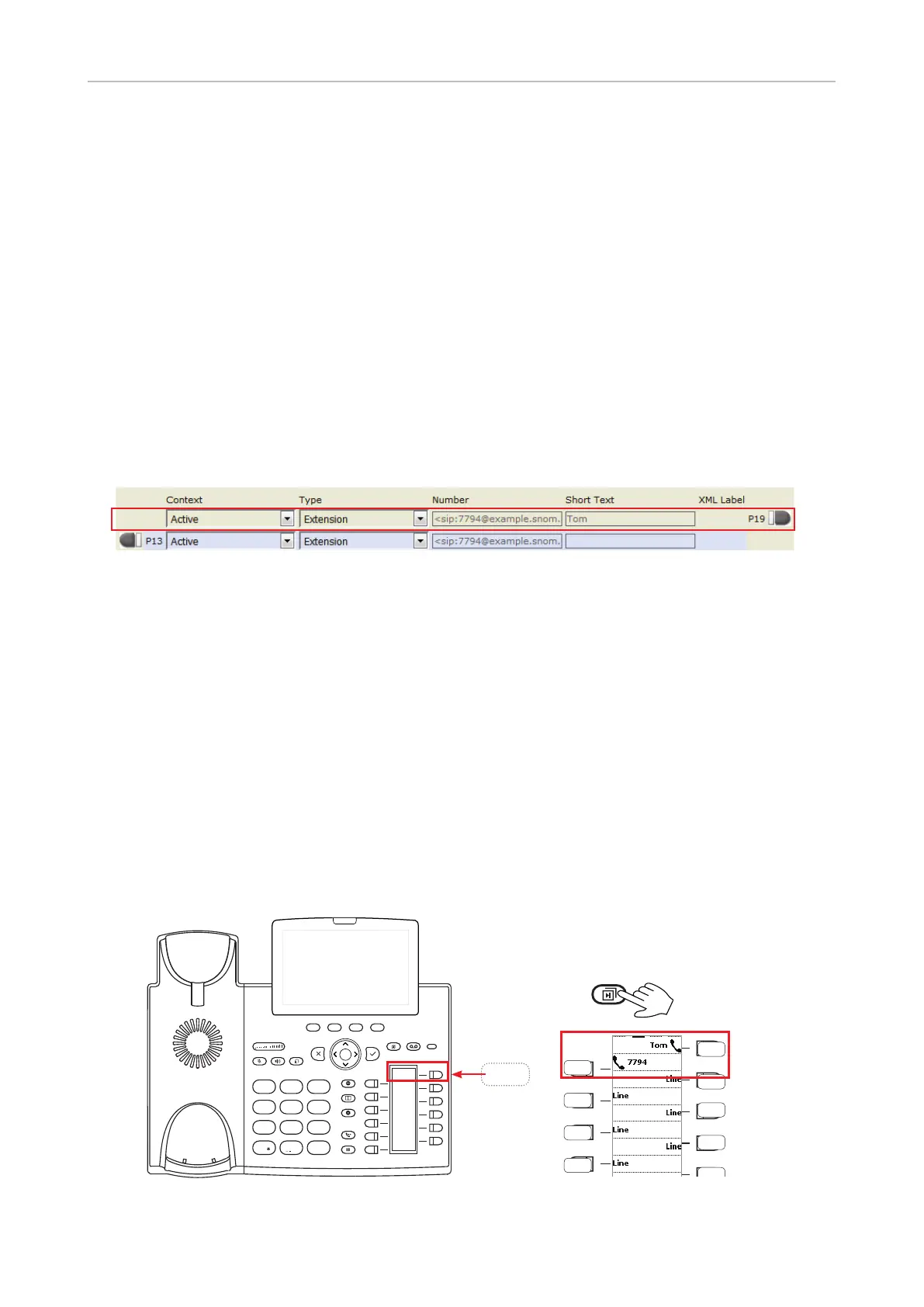 function keys with LEDs. In our example we are monitoring extension 7794 on key P19 of