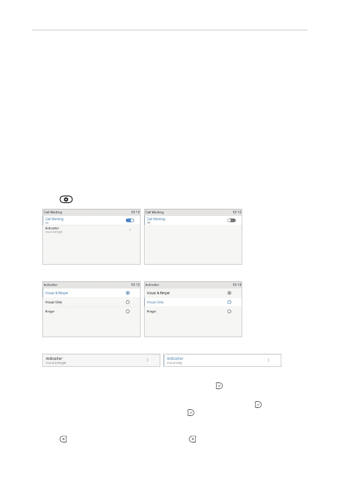Call waiting menu. The Indicator setting now indicates the new setting, for example, if you