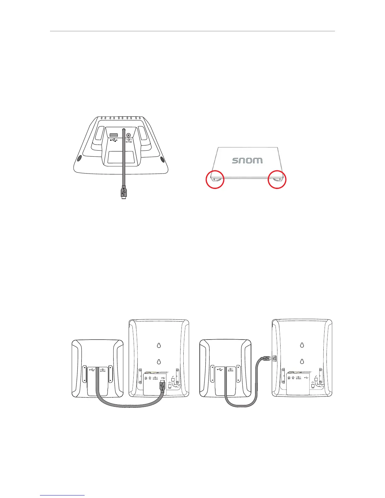 1. Insert the USB plug attached to the cable of the Snom D7 into the USB port on the Snom phone. If