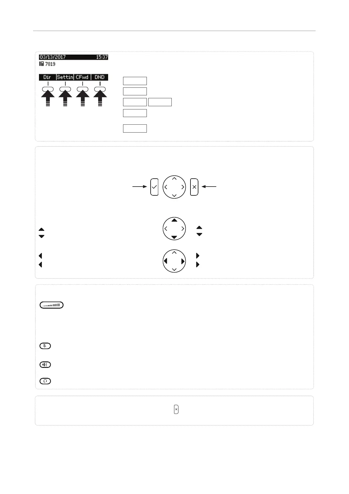 Looking up phone's IP address during initial logon: Press for three seconds.