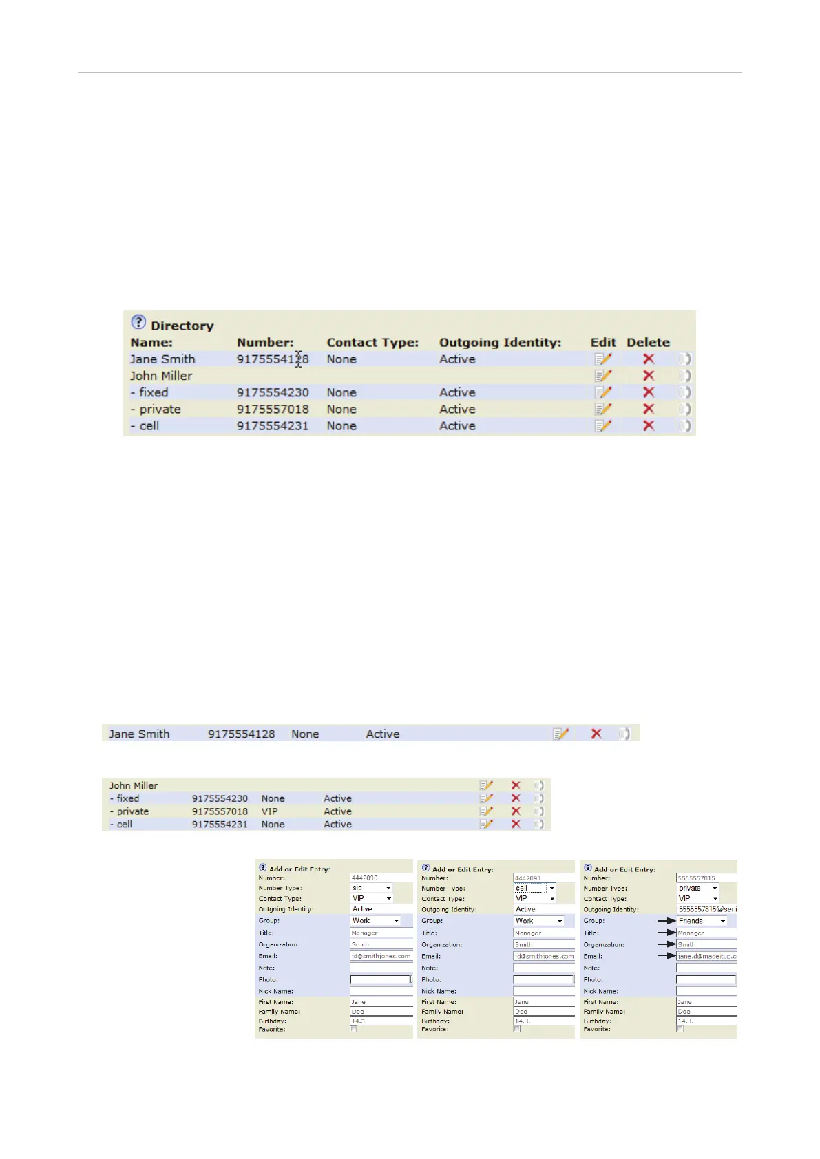 Each entry must have at least one phone number; multiple associated phone numbers are possible. If