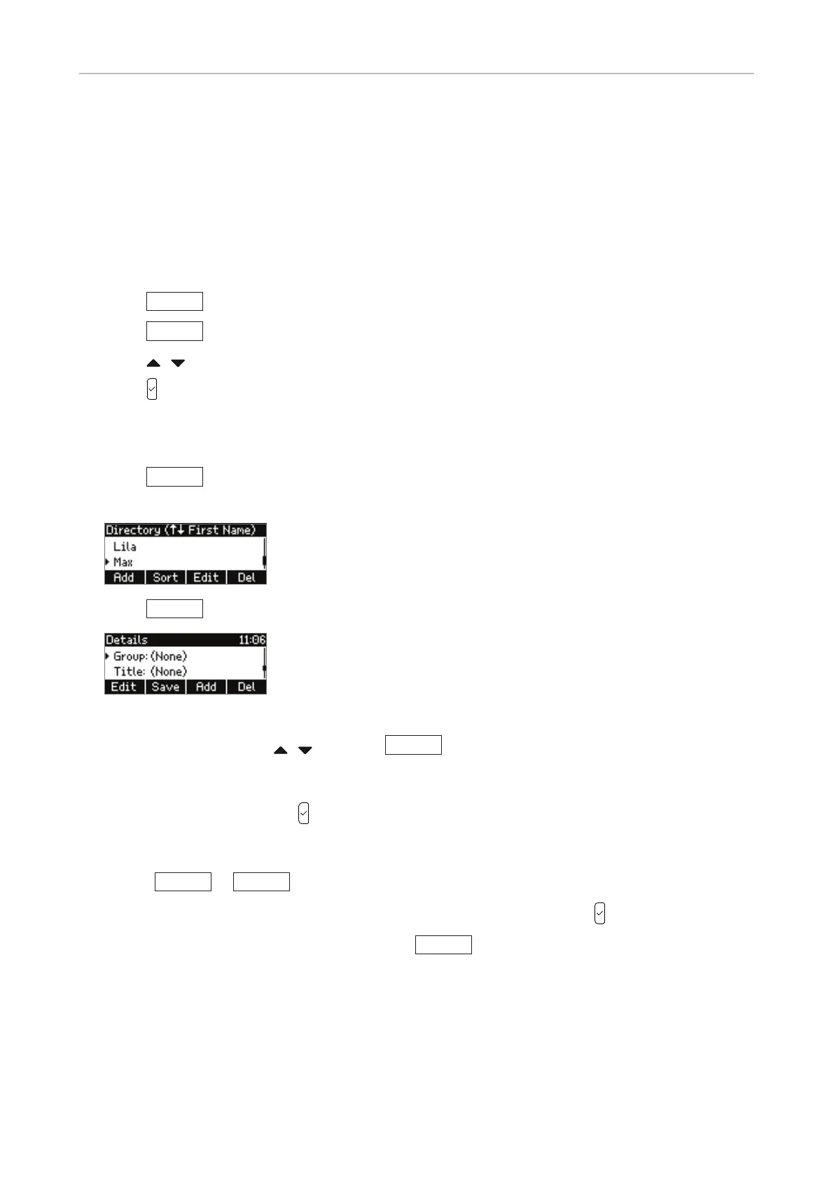 2. Selecting an entry: Scroll to the entry or enter the first letter of the name.