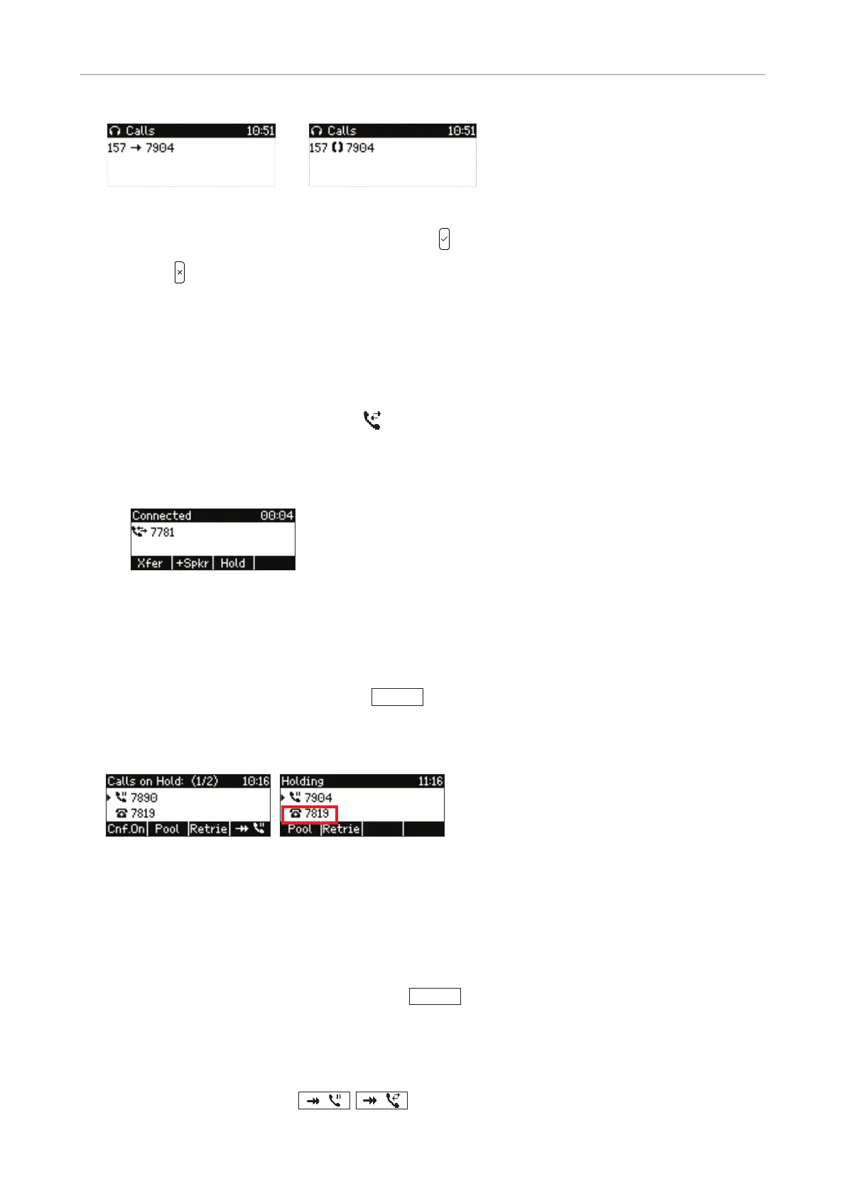 ◦ When a call is ringing on the extension, press to pick it up on your phone.
