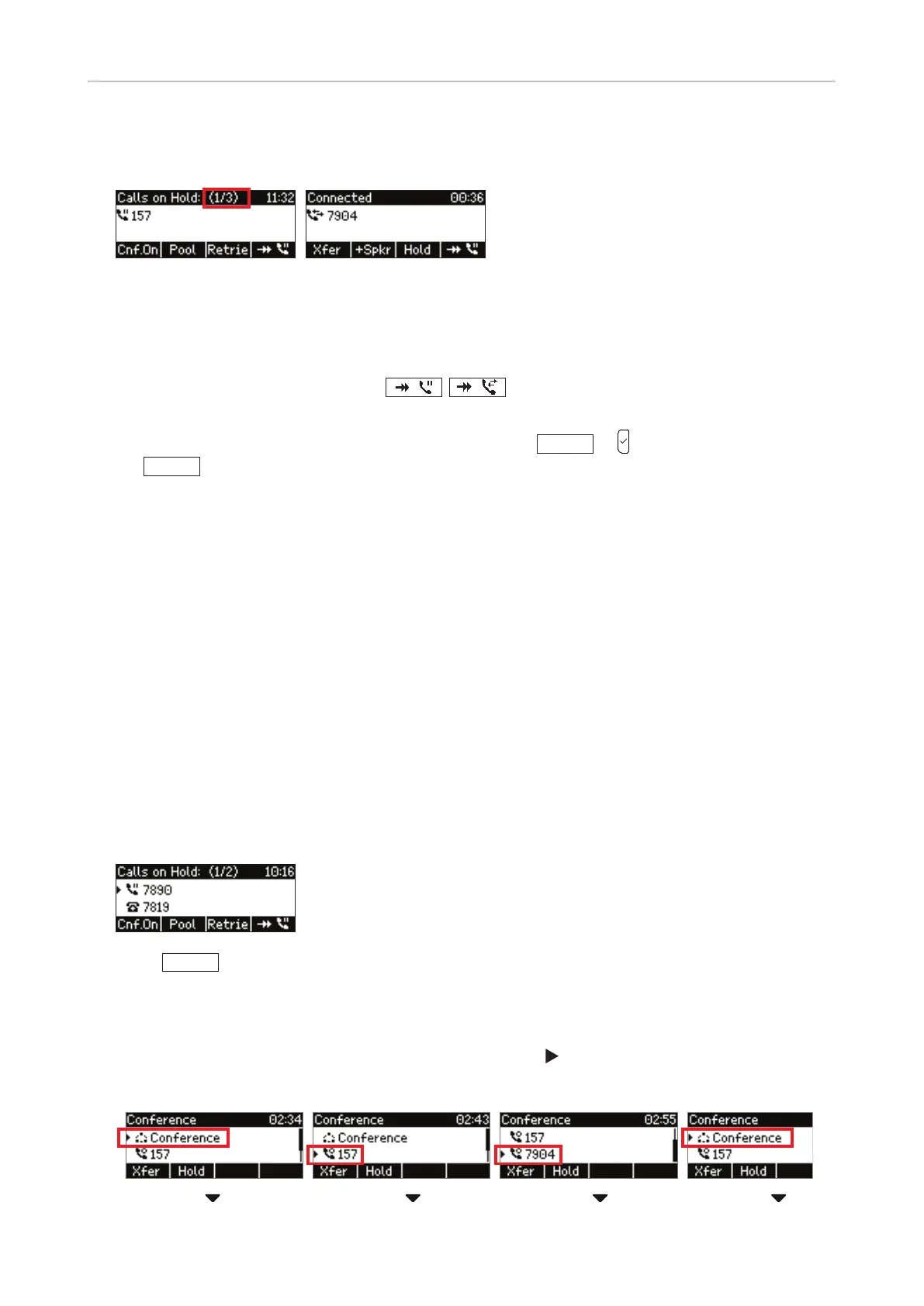 function key underneath to put the calls onscreen (round-robin principle). You can hold up to four