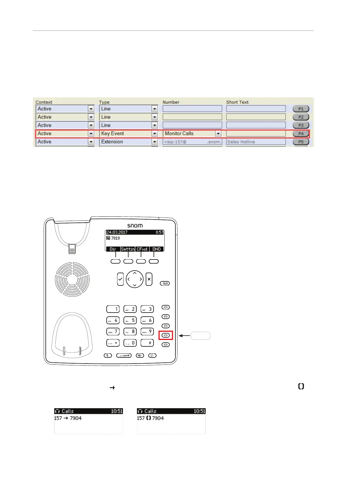 P4 will be programmed to show ongoing activity on monitored extensions or lines on the display.