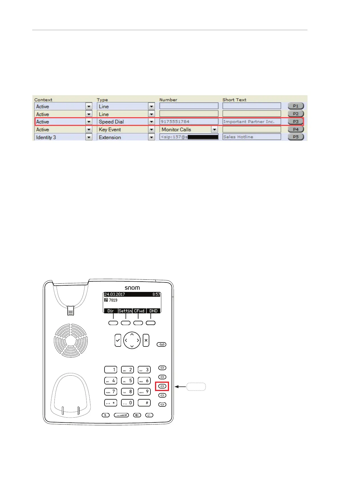 You can now speed dial the number 9175551784 by pressing key P3 on the phone.