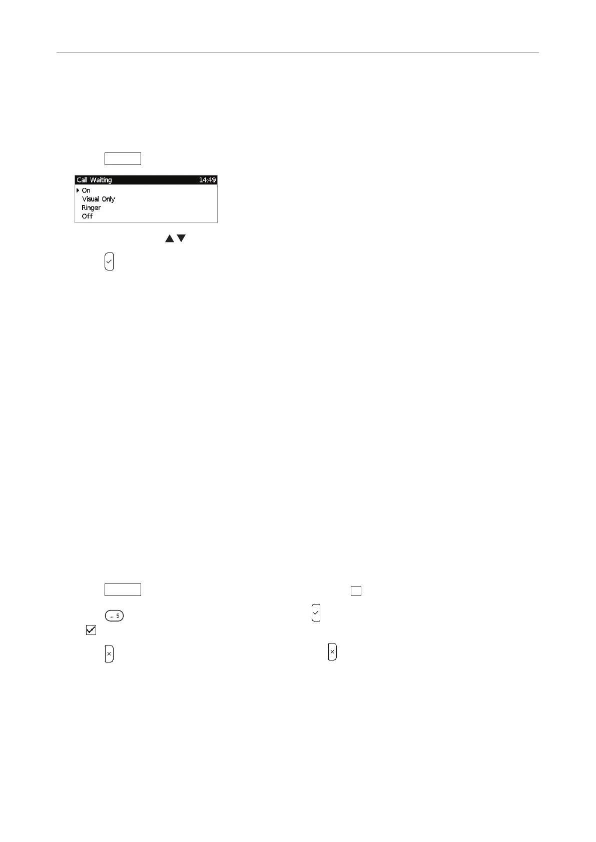 > 2 Call Features > 3 Incoming Calls > 2 Call Waiting.