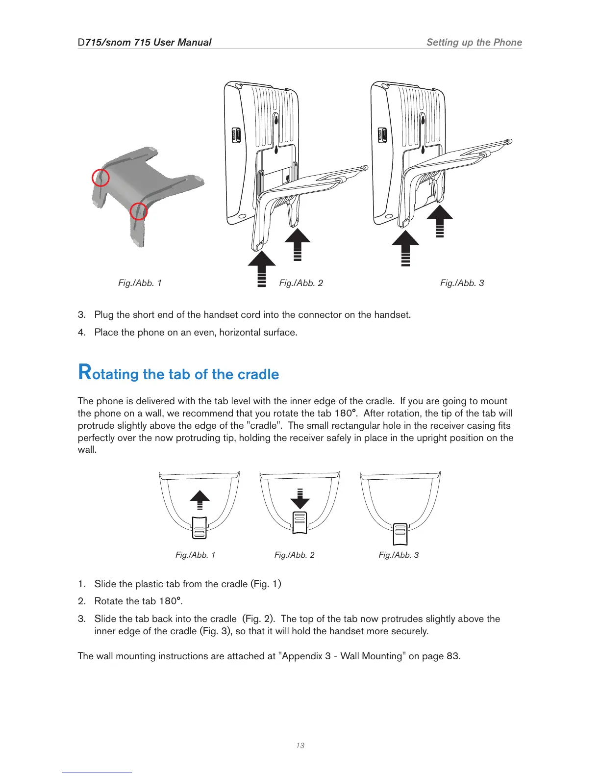 the phone on a wall, we recommend that you rotate the tab 180°. After rotation, the tip of the tab will