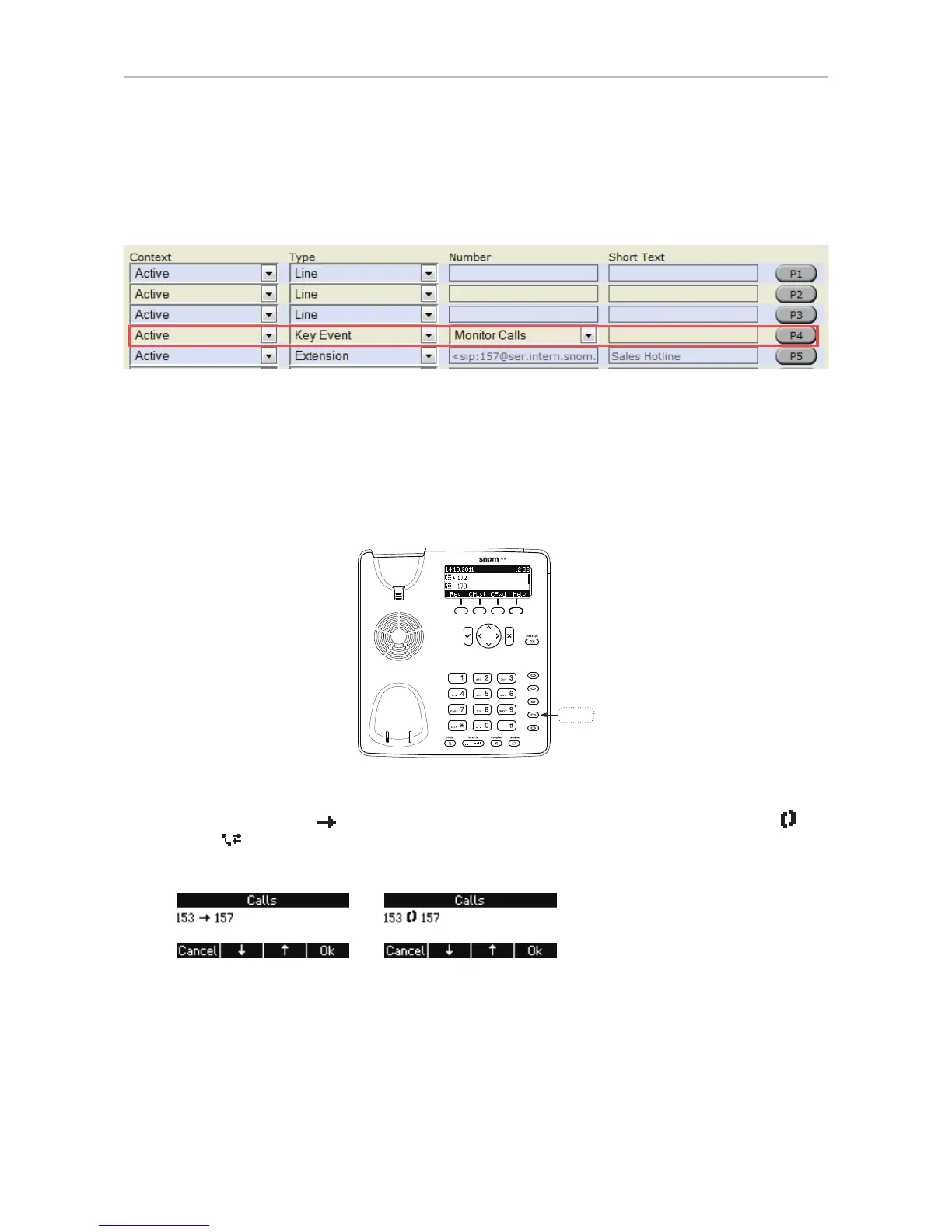 display, for example the number of an incoming call to that extension or line. In our example, key P4 will
