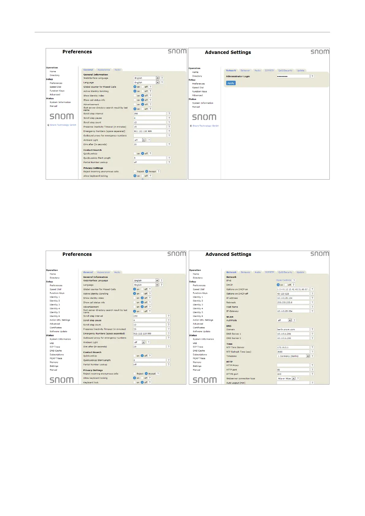 In administrator mode, the two pages look like this: