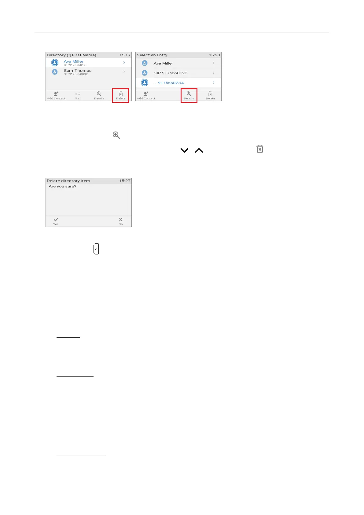 5. If you are, press to delete the entry or phone number.