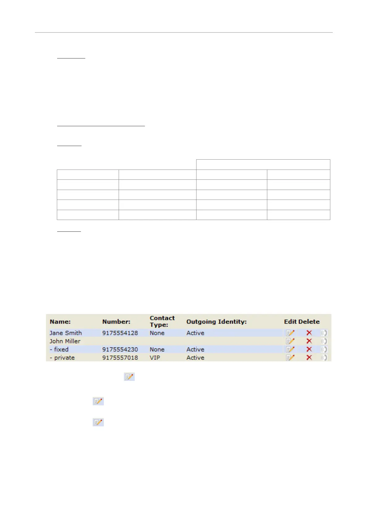 - Click on in a phone number's line if you want to edit the subentry's data (phone