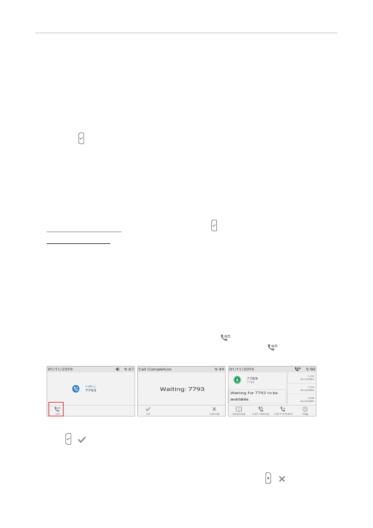 1. When call completion is available and enabled, the symbol appears in the function key line