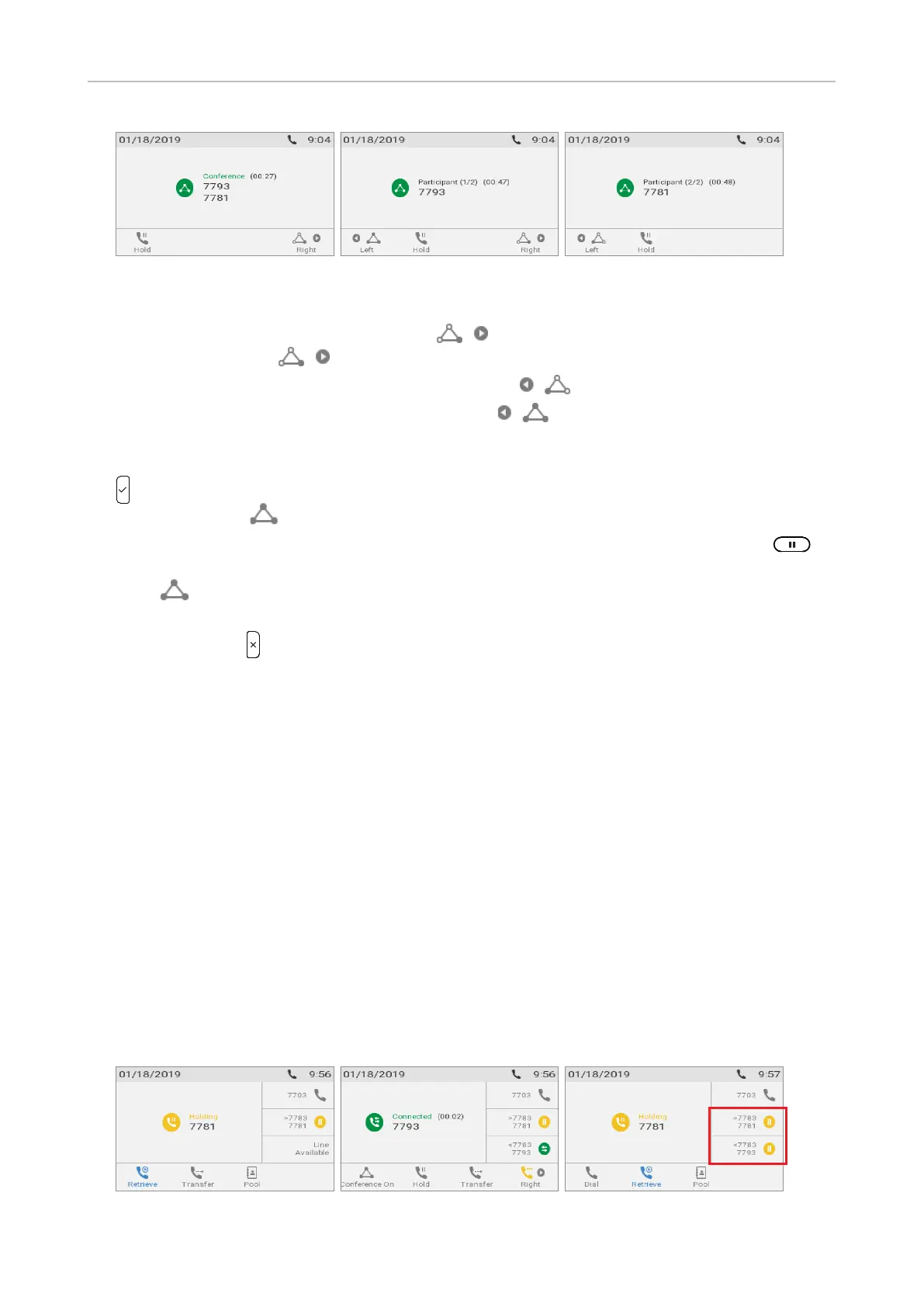 ◦ On the conference screen (Fig. 2), press to select the first of the participants of the