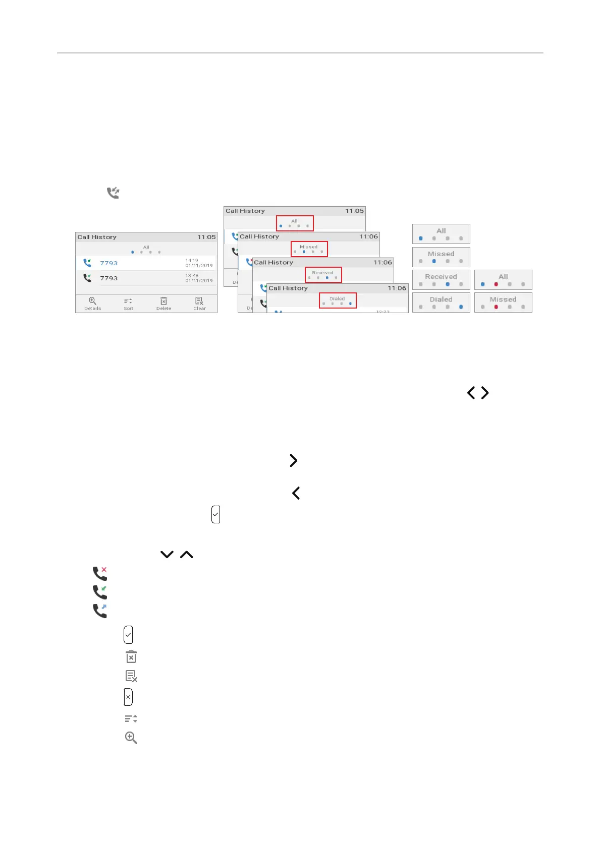 ◦ Press to sort the calls.