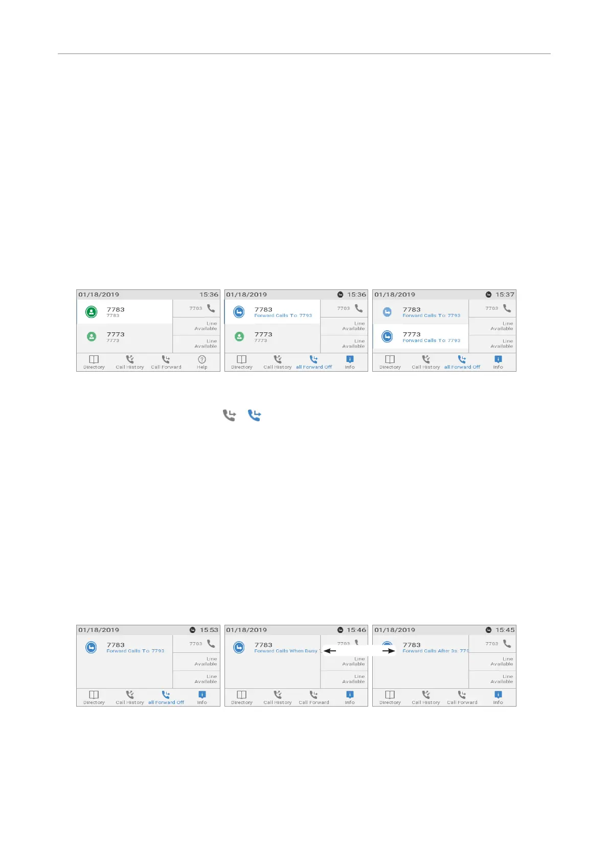 Fig. 4 – Forwarding all calls Fig. 5 – Forwarding when busy Fig. 6 – Forwarding when call has not been
